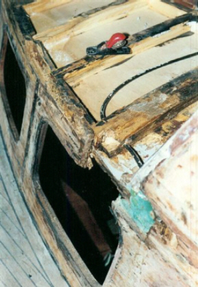 Im laufe der Jahre ist das Deck porös geworden. An den Püttingeisen konnte das Wasser besonders gut den Weg unter das Deck finden.